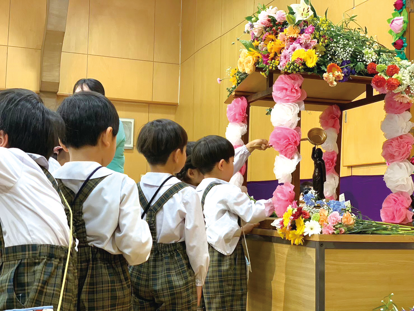 園ではお釈迦様の誕生日を祝う花まつりを1ヶ月おくれで、おまつりします。