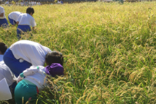 東大寺中学生との交流の2回目です。6月に植えた稲を刈り取ります。