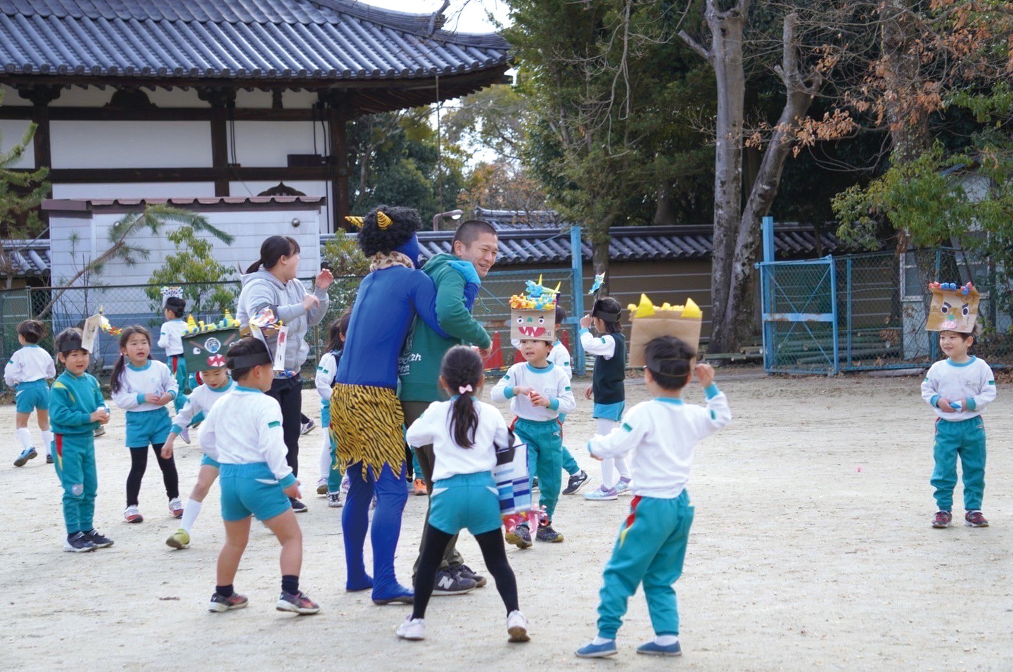 鬼の面を作り、豆まきをします。鬼さんに豆を投げつけ、鬼を追い払います。子ども達がドキドキ、楽しみにしている行事の一つです。