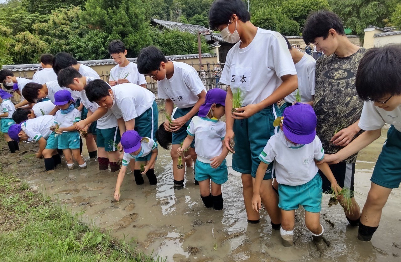 二月堂下の田んぼで、東大寺学園中学生と一緒に田植えをします
