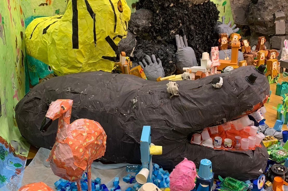 全園児が協力し合って、一つのテーマのもと共同製作をします。絵画では、少年組は保育室のほとけさま、年中・年長児はだいぶつさまを描き展示します。